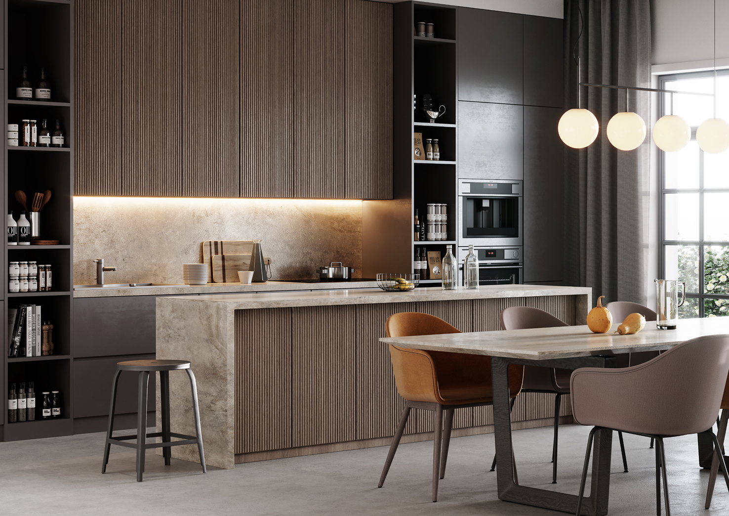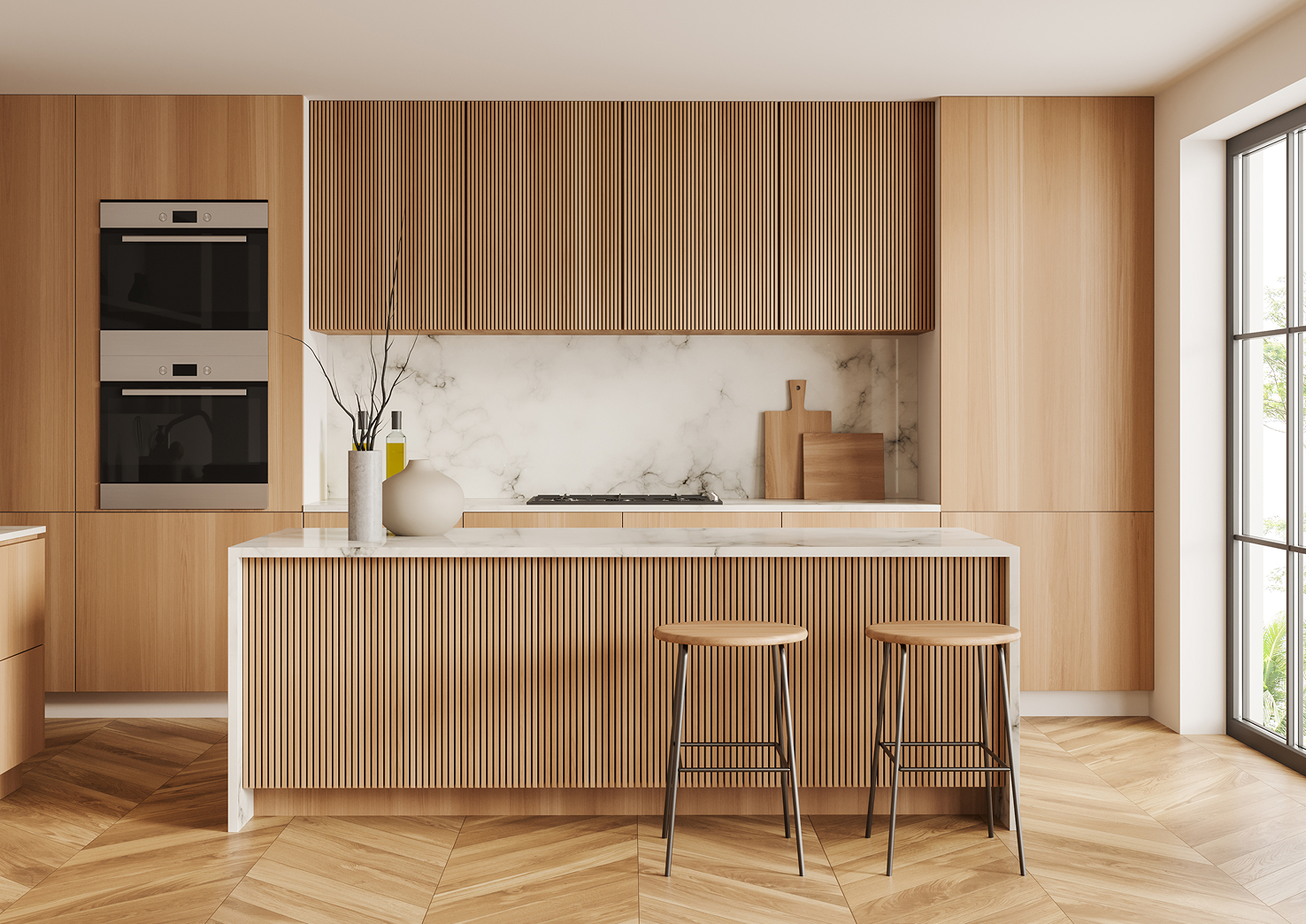 Sleek and minimal, handleless kitchens create a sociable, understated aesthetic with features like recessed channels and push-to-open systems.