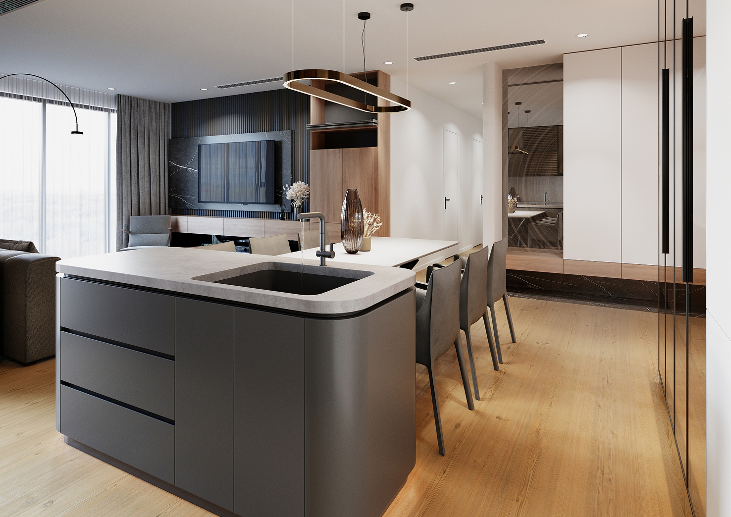 Contemporary kitchens blend clean lines, high-quality surfaces, and integrated smart technology for a space that’s as practical as it is premium.